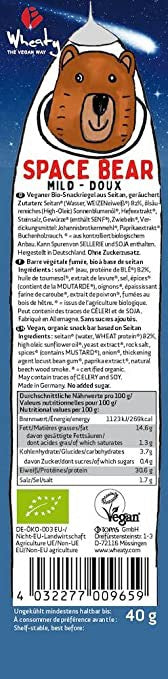 Ingrediente: seitan* (apă, proteine din grâu*) 82%, ulei de floarea soarelui cu conținut ridicat de acid oleic*, extract de drojdie*, sare gemă, condimente* (conține muștar*), ceapă*, agent de îngroșare: făină de roșcove*, extract de paprika*, fum din lemn de fag.