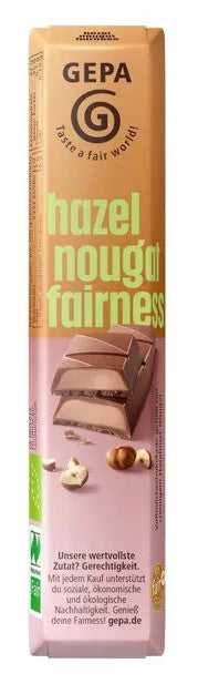 Ingrediente: umplutură de nuga (50%): pastă de alune*, zahăr integral din trestie Mascobado°*, zahăr crud din trestie°*, lapte praf integral°*, unt de cacao°*, aromă: extract de vanilie°*. Ciocolată albă (30%): zahăr crud din trestie°*, unt de cacao°*, lapte praf integral°*, aroma: extract de vanilie°* Ciocolată cu lapte integral (20%): lapte praf integral°*, unt de cacao°*, zahăr integral din trestie Mascobado°*, masă de cacao°*, zahăr brut din trestie °*, aromă: extract de vanilie°*.