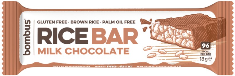 Baton din orez brun glazurat cu ciocolată belgiană cu lapte.