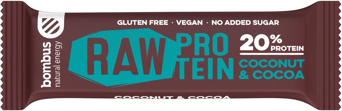 Ingrediente: curmale 50%, nucă de cocos 23%, proteină din orez 21%, pulbere de cacao 6%.