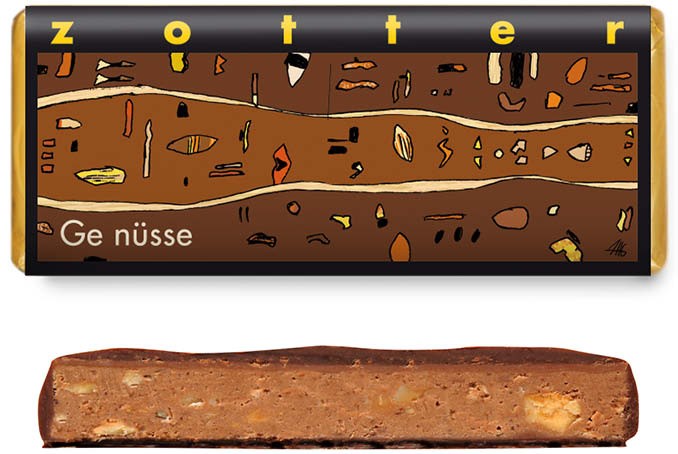 Ingrediente: zahăr brut din trestie de zahăr°*, alune de pădure°(20%), masă de cacao°*, unt de cacao°*, lapte praf integral°, migdale°(6%), nuci caju°*(6%), unt°, lapte praf degresat°, emulsificator: lecitină din soia°, zahăr brun integral°*, sare de stâncă, pudră de vanilie°, scorțișoară°, cardamom°, anason°.