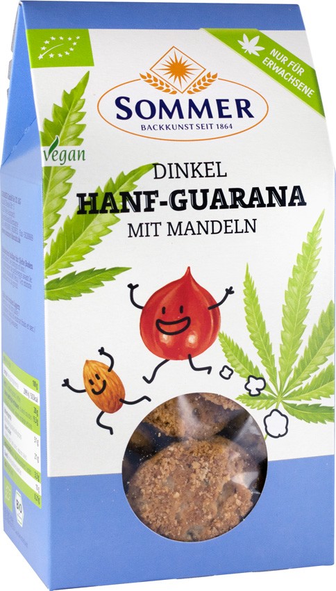 Ingrediente: făină de grâu spelta*1 (44%), zahăr din sfeclă*, ulei de palmier neîntărit*, semințe de cânepă* (10%), migdale* (9%), guarana* (0,5%), ulei de portocală*, sare de mare, agent de creștere: bicarbonat de sodiu.