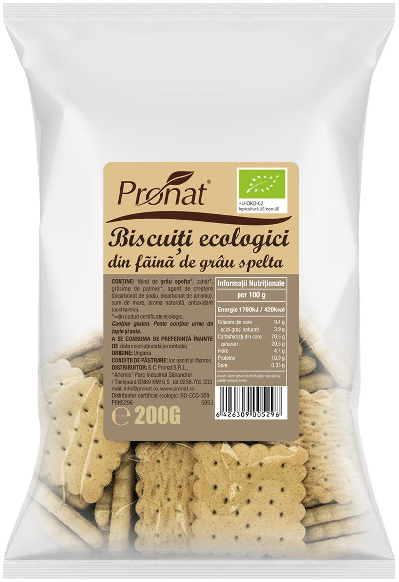 Conține: făină de grâu spelta*, zahăr*, grăsime de palmier*, agent de creștere: (bicarbonat de sodiu, bicarbonat de amoniu), sare de mare, aromă naturală, antioxidant: (acid tartric).