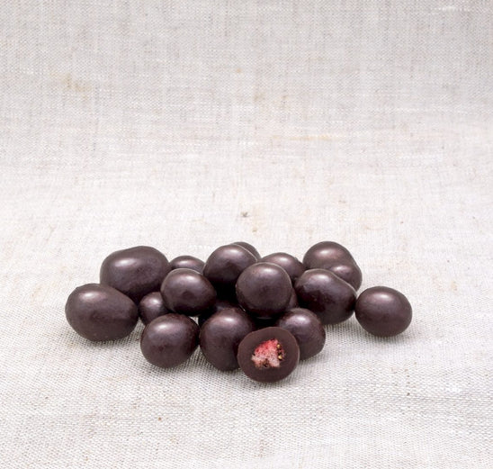 Ingrediente: ciocolată neagră* 90% (pastă de cacao*, zahăr din trestie de zahăr*, unt de cacao*, pudră de cacao degresată*, emulgator: lecitină (soia*)), căpșuni* 9%, agent de glazurare: gumă arabică*; zahăr*, dextroză*.