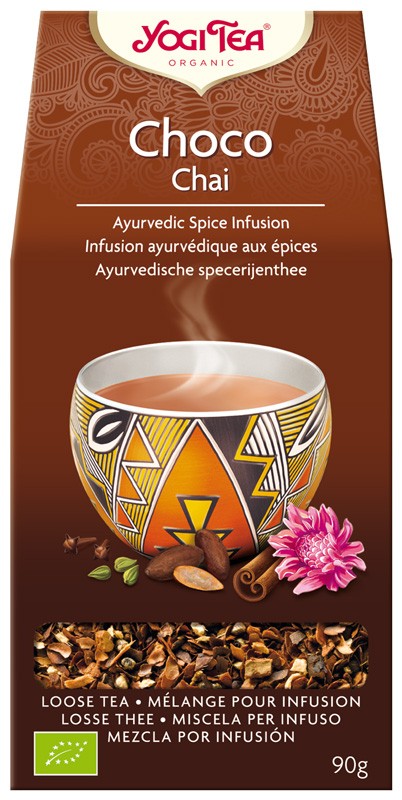 Aztecii, prin fierberea diverselor plante şi condimente, cu boabe de cacao, au creat o excelentă bautură numită 'Xocoatl', Yogi Tea a scos la lumină vechea rețetă dar şi mai mult decât atât, au îmbunătăţit-o, aducând-o cu un pas mai aproape de perfecţiune! Choco Chai este un amestec festiv de scorțișoară, cardamom, ghimbir, cuișoare, piper și coji de cacao.