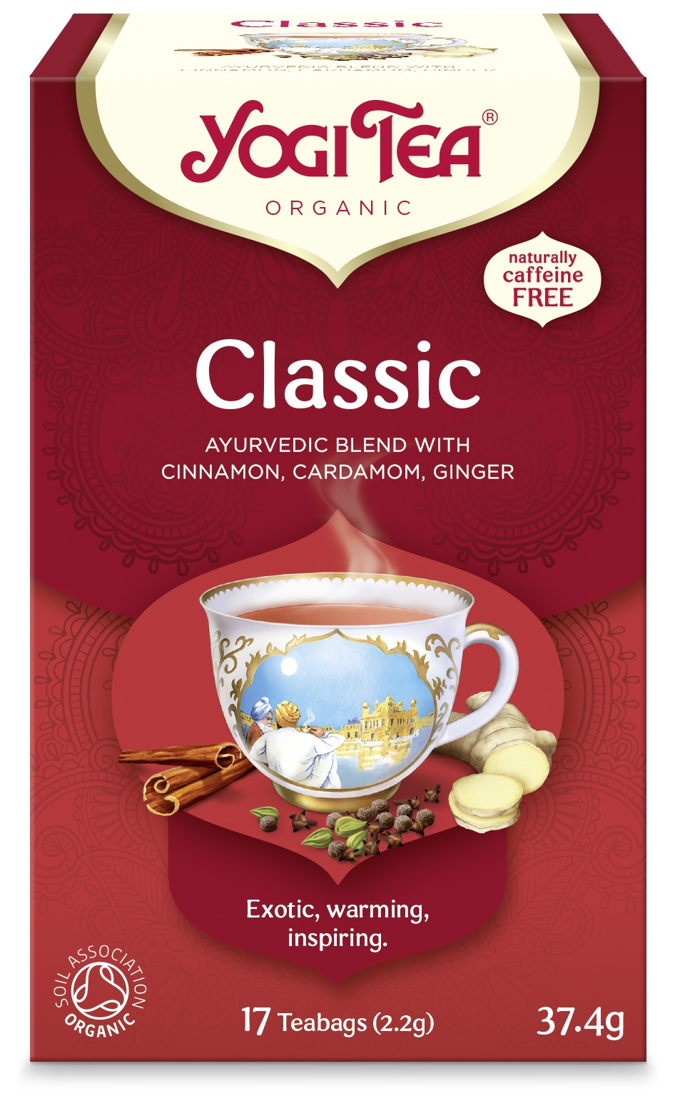 O aromă deosebită din cardamom, scorţişoară, cuişoare şi piper negru: această reţetă clasică are o tradiţie de mii de ani şi este profund legată de obiceiurile ancestrale practicate în estul îndepărtat. Aromele dulci şi ispititoare ale ceaiului Yogi Tea Classic vă vor încălzi atât spiritul cât şi inima. Închideţi ochii și inhalaţi aroma bogată de scorţişoară şi ghimbir.