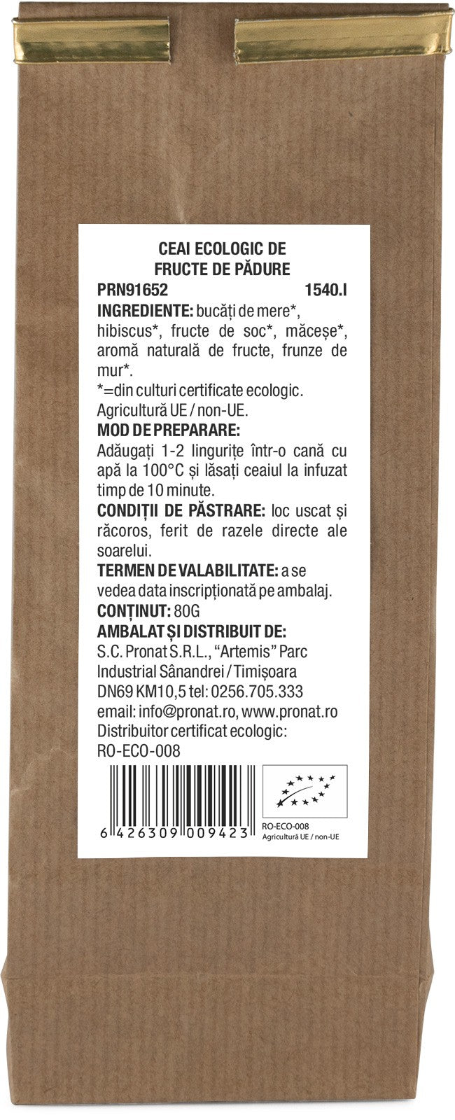 INGREDIENTE: hibiscus*, bucăți de mere*, coji de măceșe*, aromă naturală de fructe, zmeură* (3%), frunze dulci de mur*, frunze de mur*.