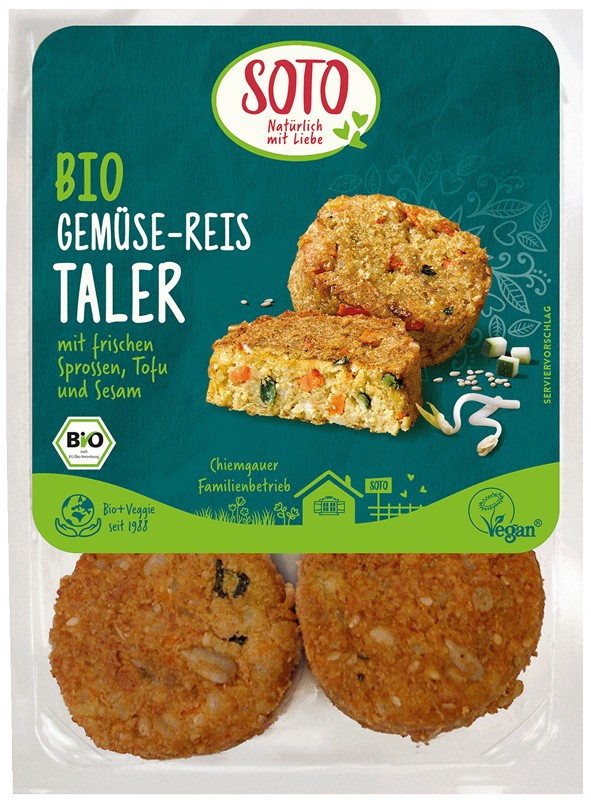 Ingrediente: orez integral* (27%), dovlecei* (16%), tofu* (16%) (apă, boabe de soia*, agent de coagulare: sare Nigari), morcovi* (16%), făină din fulgi de grâu spelta*, fulgi de ovăz*, semințe de floarea-soarelui*, făină de hrișcă*, muguri de fasole mungo* (2%), ulei de floarea-soarelui*, susan* (1%), sare, condimente*.