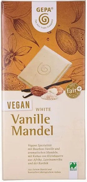 Specialitate vegană cu vanilie bourbon și migdale aromate, cu cacao de la micii fermieri din Africa, America Latină și Caraibe.