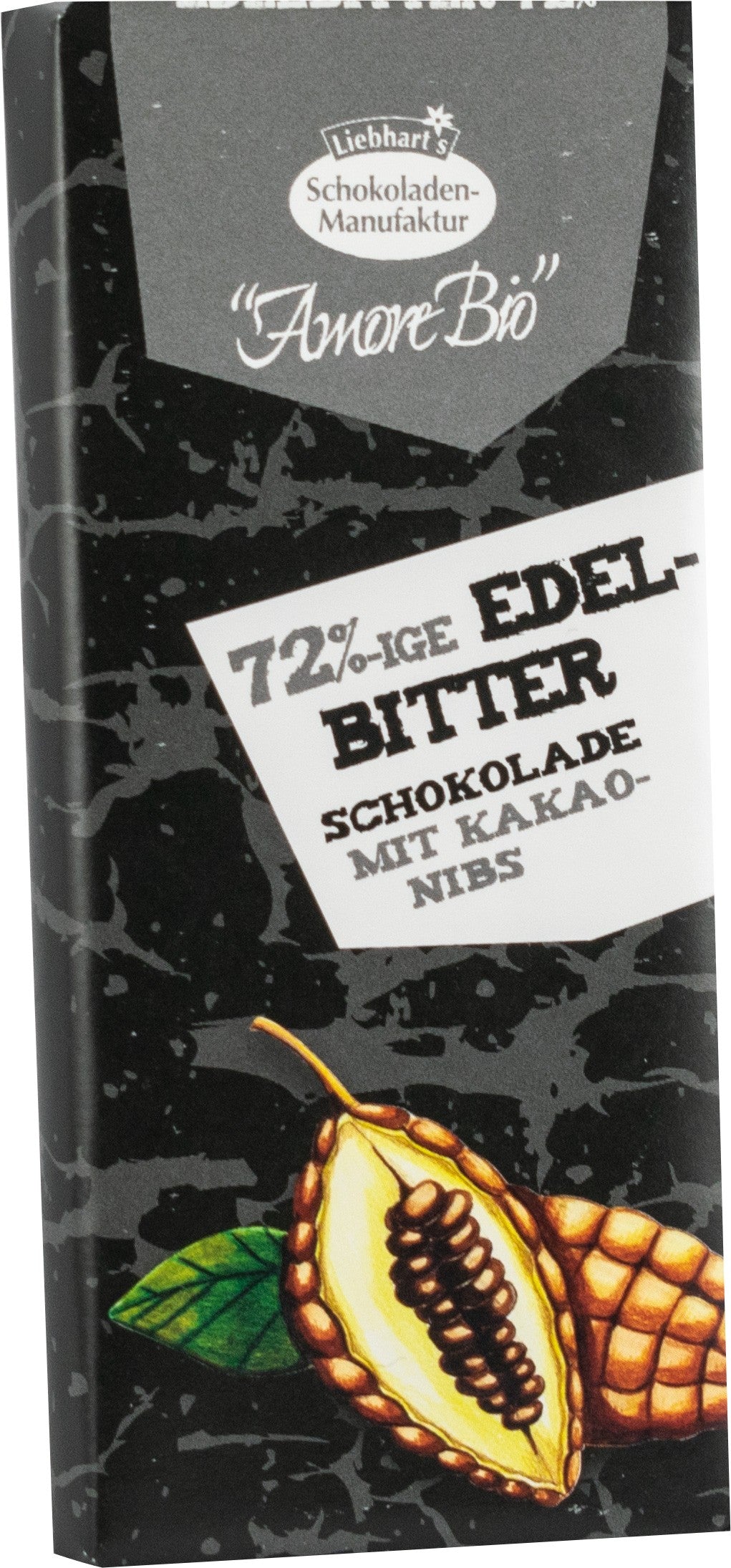 INGREDIENTE:masă de cacao *, zahăr din trestie de zahăr*, unt de cacao*,bucăți din semințe de cacao* 7,5%, păstăi de vanilie* Bourbon măcinate. Cacao: minim 72% in cicocolata