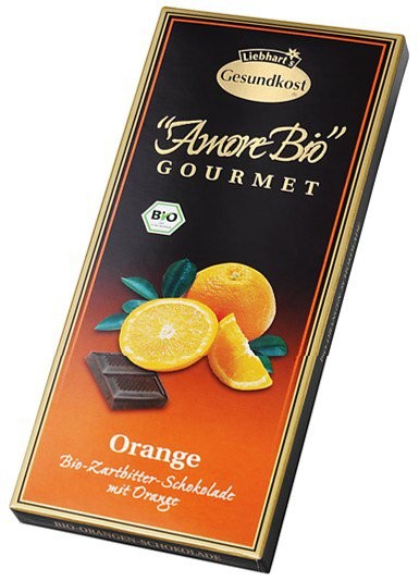 Ingrediente: zahăr brut din trestie*, masă de cacao*, unt de cacao*, coji de portocale confiate* (coji de portocale, sirop de porumb*), aromă naturală de portocale cu alte arome, vanilie Bourbon*.*din culturi ecologice controlate
