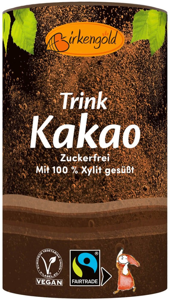 Cacaoa de la Birkengold este începutul perfect al zilei. Cacaoa de înaltă calitate certificată Fairtrade este îndulcită exclusiv cu xilitol european din coaja de mesteacăn și fag. Xilitolul este la fel de dulce și gustos ca zahărul, dar are o serie de proprietăți pozitive. În comparație cu zahărul, are cu 40% mai puține calorii. În plus, contribuie la mineralizarea dinților atunci când alimentele și băuturile sunt îndulcite cu xilitol în loc de zahăr.