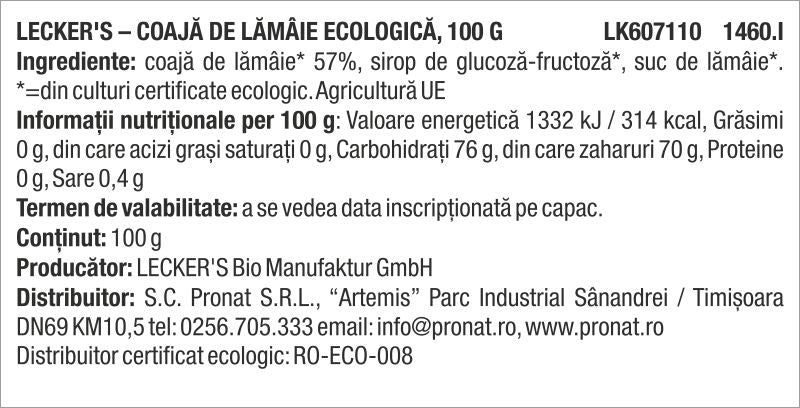 Ingrediente: coajă de lămâie* 57%, sirop de glucoză-fructoză*, suc de lămâie*.