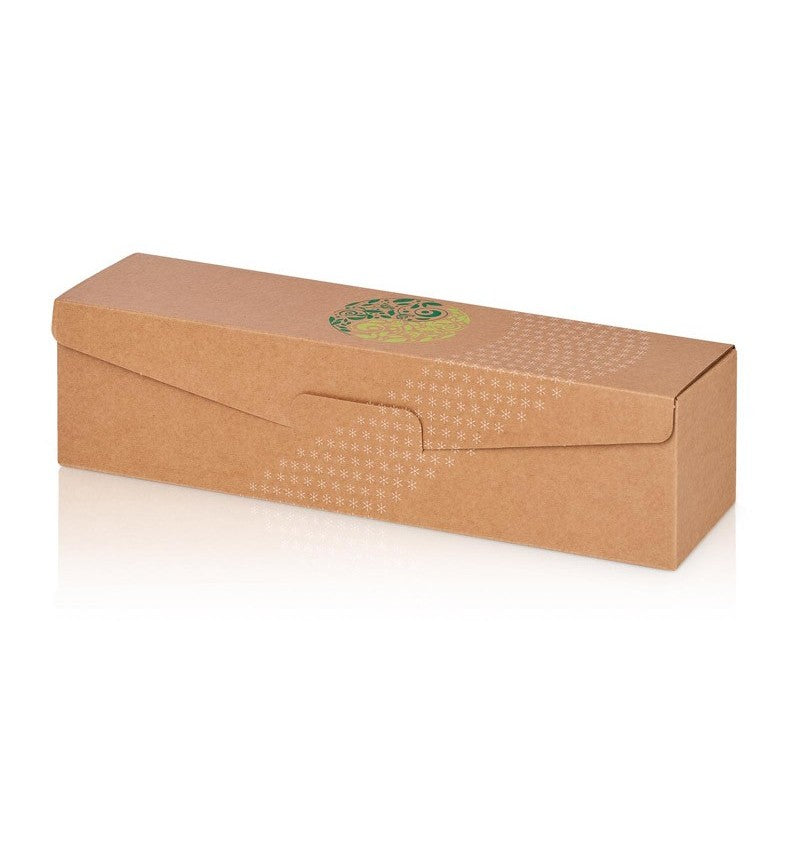 Acest ambalaj subliniază durabilitatea produselor noastre. Motivul în nuanțe proaspete de verde pe un carton natural maro este în armonie cu natura. Interiorul este de asemenea maro natural!