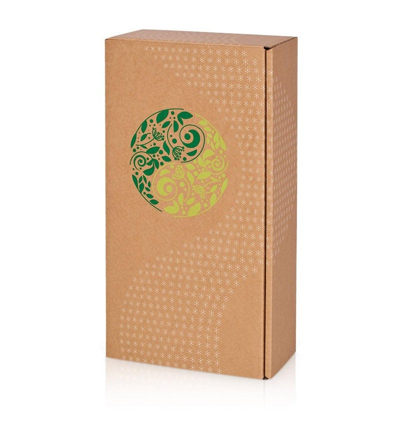 Acest ambalaj subliniază durabilitatea produselor noastre. Motivul în nuanțe proaspete de verde pe un carton natural maro este în armonie cu natura. Interiorul este de asemenea maro natural!