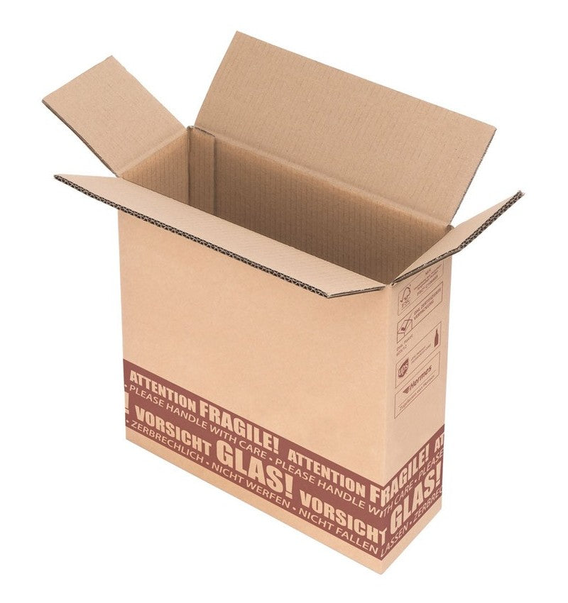 Cutie de livrare dovedit de rezistentă pentru 3 sticle de până la 360 mm lungime și un diametru de până la 90 mm.