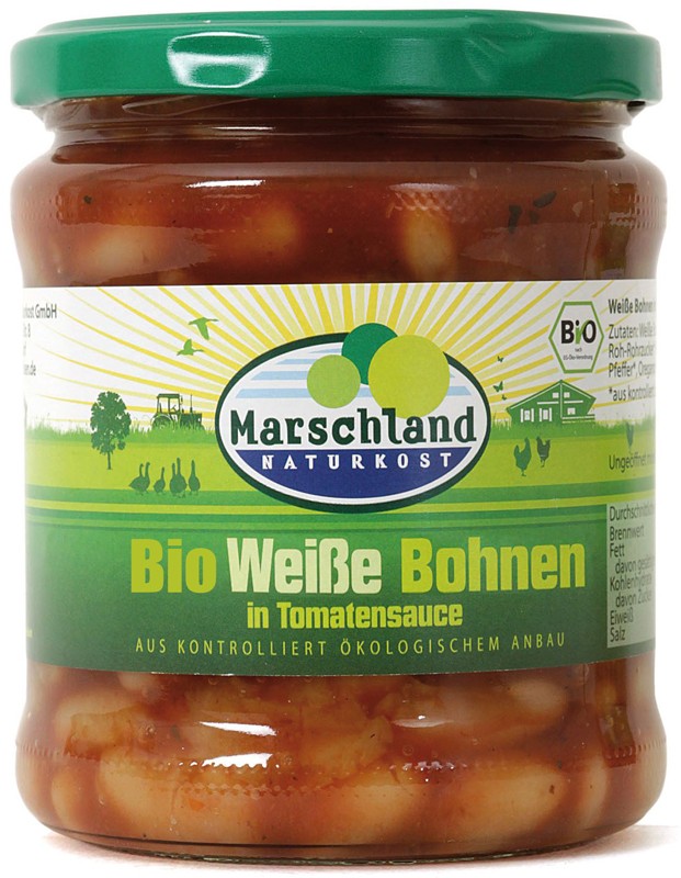 INGREDIENTE: fasole albă*, apă, pastă de roșii*, zahăr din sfeclă de zahăr*, sare de mare, ceapă*, piper negru*, oregano*, usturoi*, busuioc*.