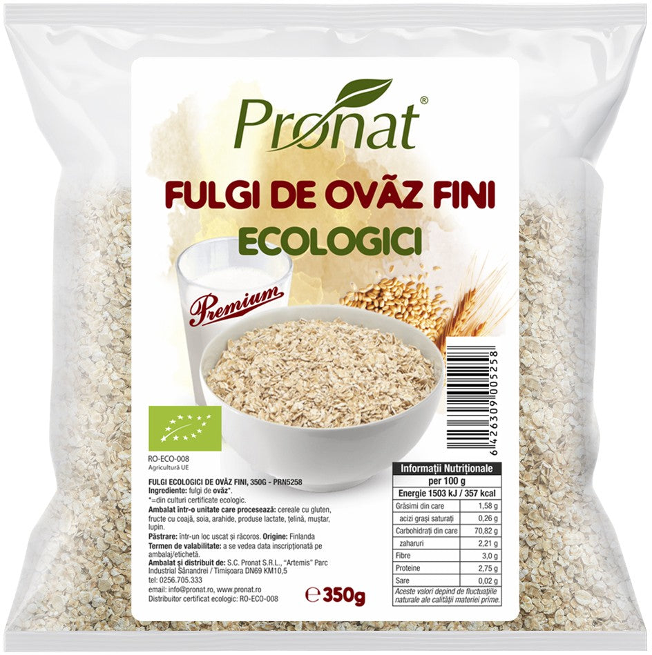 Materia primă este ovăz atent selecționat și care respectă parametrii de calitate pre-definiți: umiditate, greutate specifică, dimensiune, impurități, temperatură și miros. Ovăzul este aburit, presat și apoi prăjit. Fulgii astfel obținuți sunt măcinați și ambalați.