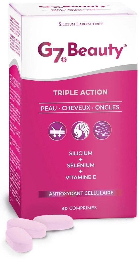 G7 Beauty® conține un nou siliciu organic brevetat, care împreună cu seleniul ajută la menținerea părului și unghiilor în stare bună și vitamina E care ajută la protejarea celulelor de stresul oxidativ.