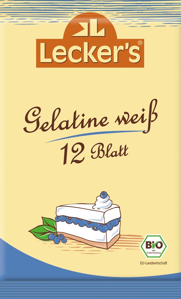 Cu gelatina ecolgică Lecker puteți acoperi creme, deserturi, prăjituri, Torturi, fructe și jeleuri. Gelatina este o proteină colagenă itinerantă.