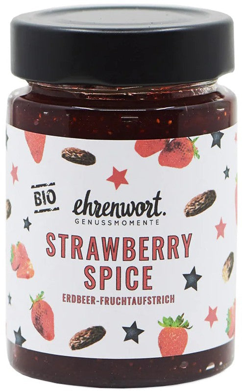 Ingrediente: căpșuni* (50%), zahăr*, suc de lămâie concentrat*, gelifiant: pectină, boabe de tonka* (0,4%).