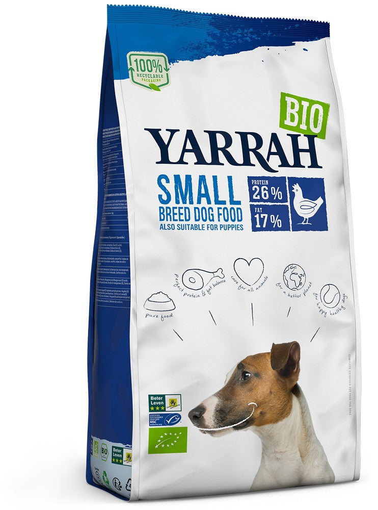 Kibble făcut cu pui bio, pește certificat MSC și mazăre ecologică pentru rase de câini de talie mică. Această hrană organică pentru câini formează o masă completă, hrănitoare și atât de delicioasă pentru câinele tău. Este hrană organică pură, ceea ce înseamnă fără arome chimice, coloranți sau arome, fără pesticide sau OMG-uri adăugate și doar cele mai bune proteine absorbabile. Deci, câinele tău primește exact ceea ce are nevoie.