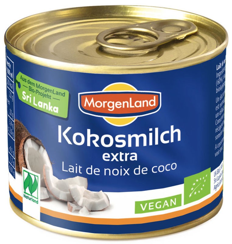 Pentru laptele de cocos Morgenland sunt folosite doar nuci de cocos proaspete și sănătoase din cultura proprie din Sri Lanka. Sunt prelucrate cu grijă, integral fără aditivi.