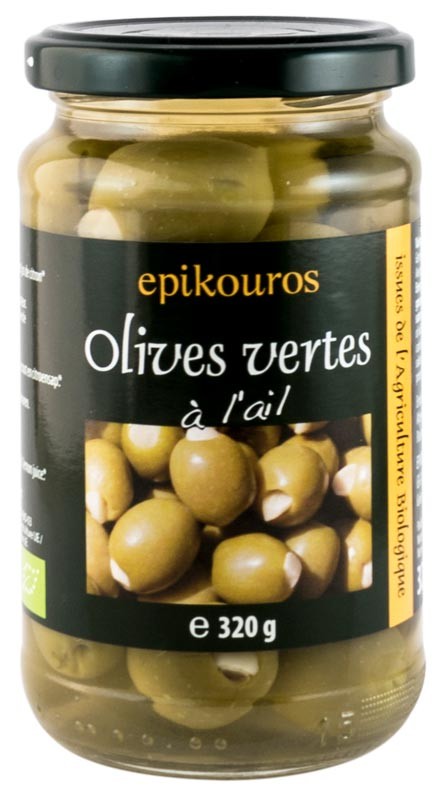 Ingrediente: măsline*, apă, usturoi*( 11%), sare de mare, suc de lămâie*.