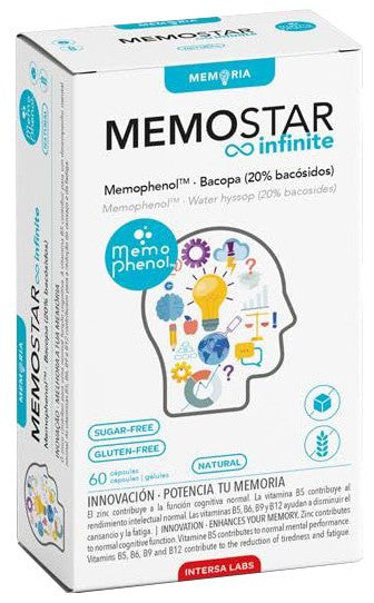 Ingrediente: Memophenol™ [extract din struguri intregi (Vitis vinifera L.) și coacăze sălbatice (Vaccinium angustifolium A.), 29% flavonoide (flavanoli, flavonoli, anthoyanine, acid phenolic și stilbene), Hidroxipropil metilceluloză (agent de acoperire, capsulă din gelatină vegetală), extract uscat din frunze de isop de apă [Bacopa monnieri (L.) Wetts, 20% bacoside], extract uscat din frunze de Ginkgo (Ginkgo biloba L.), gluconate de zinc, amidon de porumb (agent de încărcare), stearat de magneziu (agent de aglomerare), Vitamina B5, Vitamina B12, Vitamina B6, Vitamina B9.