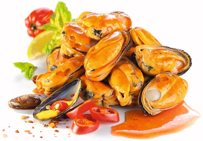 Ingrediente: midii** (70% Mytilus galloprovincialis), ulei de măsline*, oțet*, paprika*, sare.