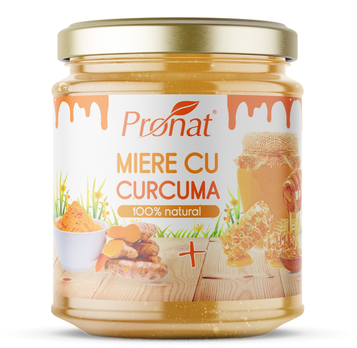 Ingrediente: miere (polifloră) 90%, curcuma (turmeric) 10%.