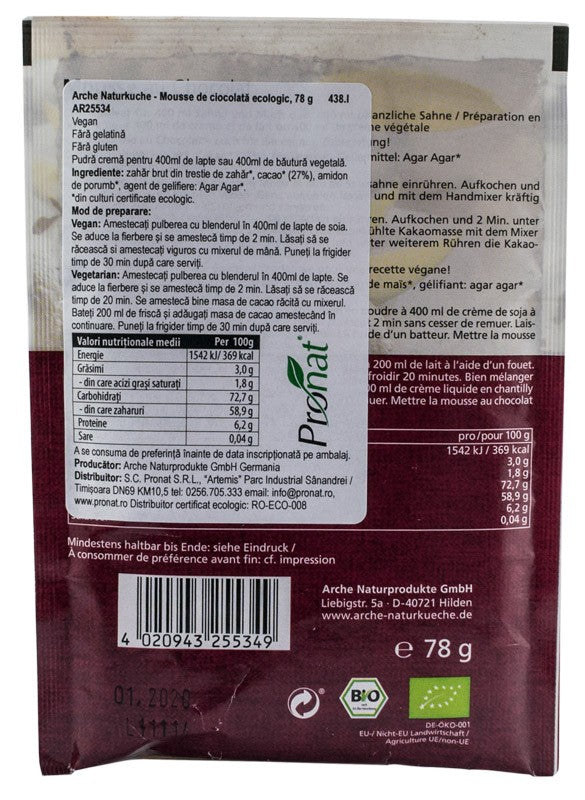 Vegetarian: Amestecați pulberea cu blenderul în 400ml de lapte. Se aduce la fierbere și se amestecă timp de 2 min. Lăsați să se răcească timp de 20 min. Se amestecă bine masa de cacao răcită cu mixerul. Bateți 200 ml de friscă și adăugați masa de cacao amestecând în continuare. Puneți la frigider timp de 30 min după care serviți.
