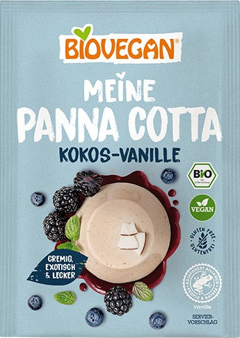 Sfat: Slăbiți marginea panna cotta cu un cuțit și turnați-o pe o farfurie. Se ornează cu sos de desert biovegan și fructe proaspete și se servește.