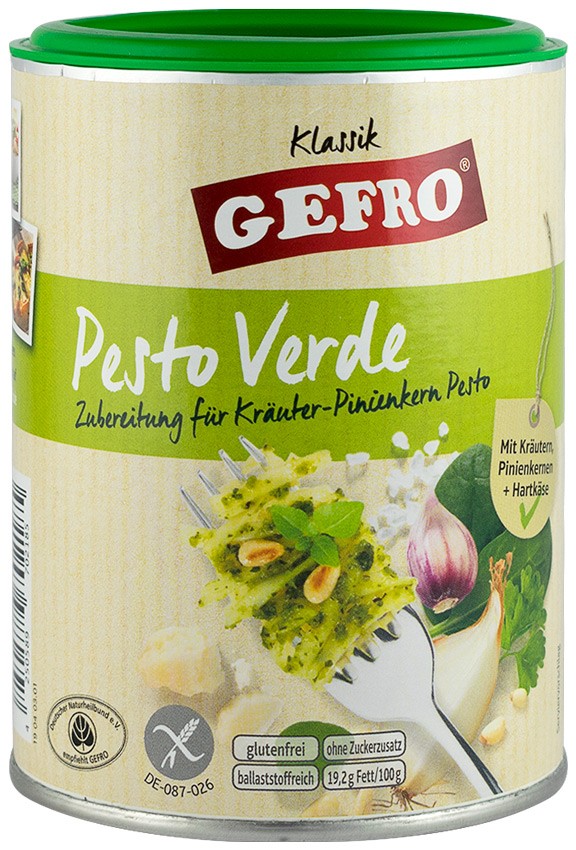 Ingrediente: 42% brânză tare, inulină (fibră din cicoare), pudră de zer dulce, ceapă, sare de mare, 6% ierburi (pătrunjel, busuioc, oregano), 5% sâmburi de pin, pudră de spanac, usturoi, condimente.