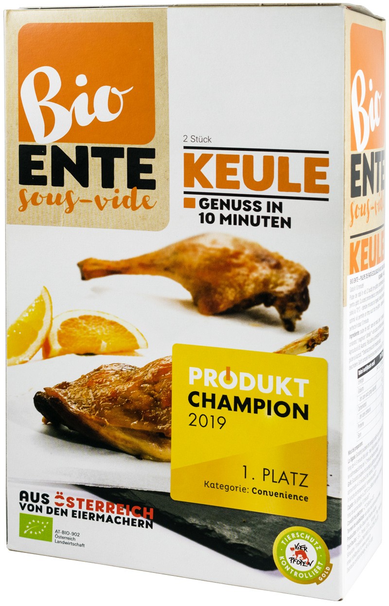 Pulpe de rață în vid (2 bucăți pre-gătite) condimentate, gata pentru gătit. Cu acest proces delicat, carnea este gătită la 50°C până la 70°C - rămâne minunat de fragedă. Această pregătire optimă vă permite un timp scurt de pre-gătire - pulpele sunt perfecte în doar 10 minute.