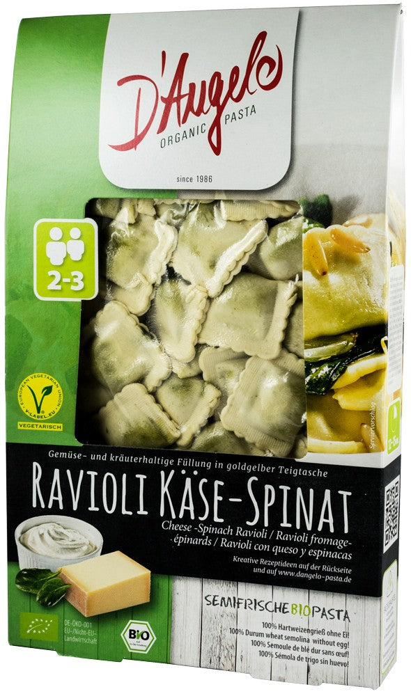 Ingrediente: aluat: griș din grâu dur*, apă / umplutură (45%): brânză* (50%: ricotta* (25%), brânză de munte* 20%, pecorino*), spărtură de pâine* (făină de grâu*, drojdie*), lapte praf*, fulgi de cartofi*, spanac uscat* (6%), ulei de floarea soarelui*, sare de mare, condimente* (usturoi*, busuioc*, piper*), emulgator: lecitină* (din soia).
