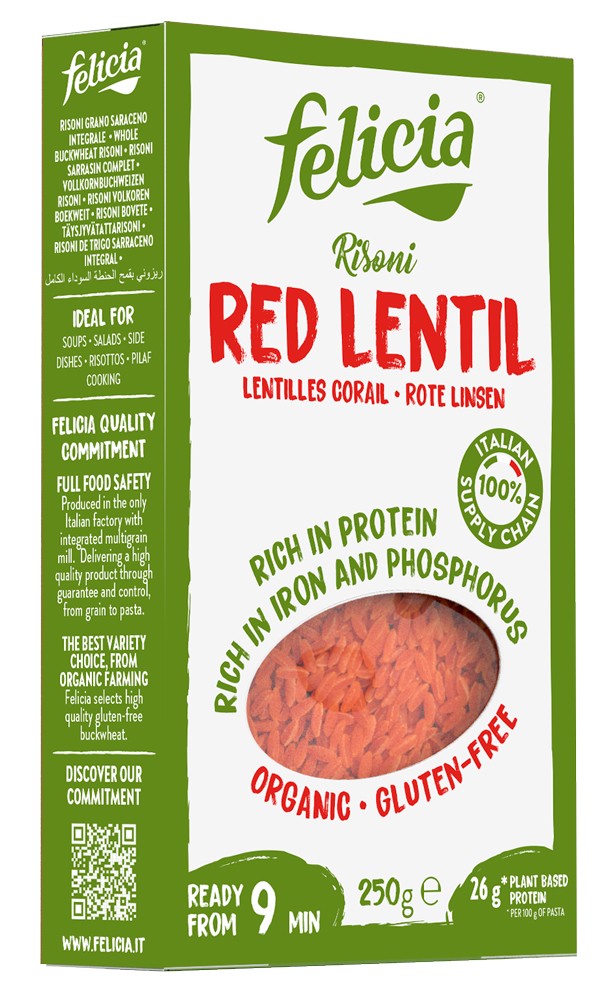 Ingrediente: 100% făină ecologică de linte roșie*.