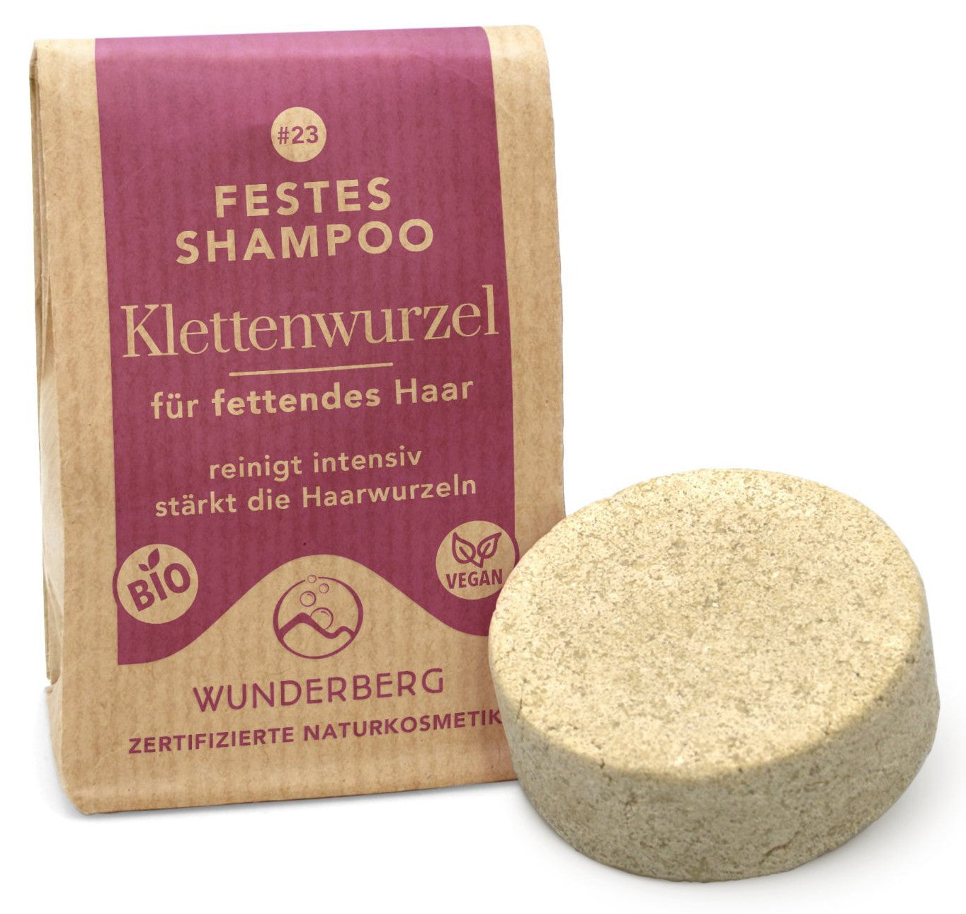 Acest șampon solid cu rădăcină de bardan este potrivit pentru părul ușor gras și are o aromă minunată de rozmarin și salvie.