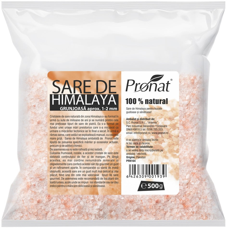 Ea s-a format pe fundul unei uriaşe mări preistorice care s-a micşorat ca urmare a mișcărilor tectonice iar în final a secat. În urmă a rămas sarea,care astăzi se exploatează manual, cu cea mai mare grijă. Sarea de Himalaya ambalată de Pronat este lipsită de poluarea specifică mărilor şi oceanelor actuale, precum şi de aditivii chimici. De asemenea ea nu este rafiată şi nici iodata. Culoarea frumoasă, rozalie, a acestor cristale de sare este datorată conținutului de fier şi de mangan.Pe lânga acestea, ea mai conţine nenumărate minerale şi oligoelemente care conferă acestei sări gourmet un gust şi un rafinament aparte. În comparaţie cu sarea de masă obișnuită, această sare are un gust mult mai delicat şi mai plăcut, fiind una din cele mai valoroase tipuri de sare gourmet.