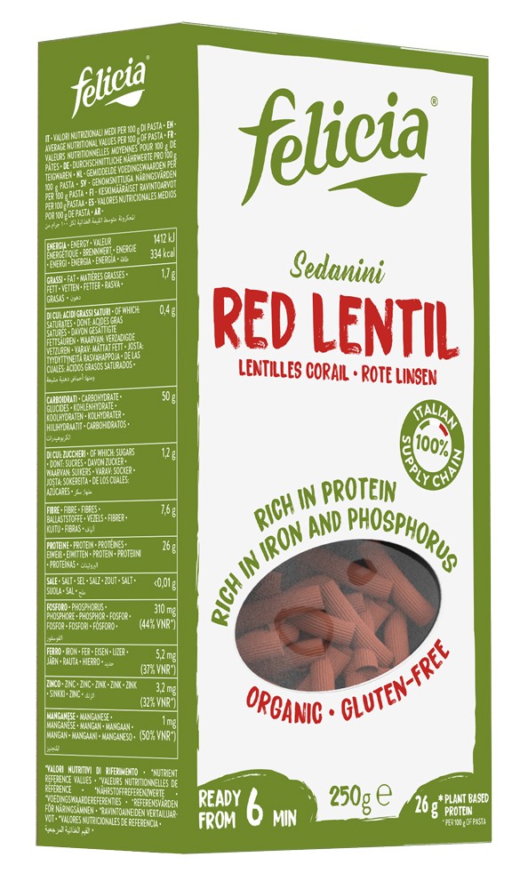 Ingrediente: 250g de sedanini din linte roșie, 180g de vinete, 2 linguri de ulei extravirgin de măsline, mentă, usturoi și sare.