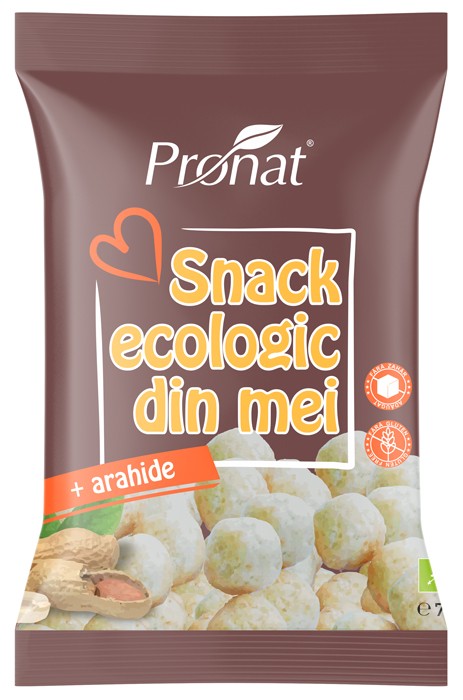 Ingrediente: mei decorticat*, arahide prăjite* 18%, ulei de floarea soarelui*, sare de mare.