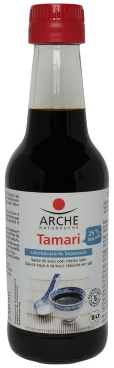 Acest sos tamari cu conținut redus de sare este fabricat în SUA conform unei rețete japoneze.