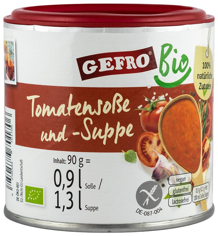 Ingrediente: 38% pulbere de roșii*, făină de orez*, zahăr din trestie*, sare de mare, ceapă*, agent de îngroșare: gumă de guar*, ulei de floarea soarelui*, condimente* (pulbere de ardei iute*, praf de usturoi*, piper*, chili*), extract de drojdie, ierburi* (cimbru*, busuioc*, rozmarin*), acidifiant: acid citric.