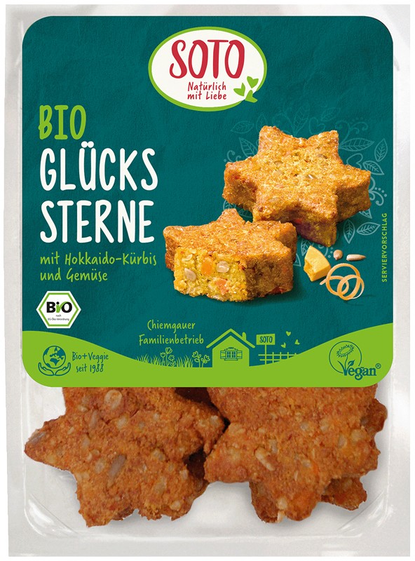 Ingrediente: orez integral* (25%), dovleac Hokkaido* (19%), morcovi* (19%), tofu* (17%) (apă, boabe de soia*, agent de coagulare: sare Nigari), făină de grâu spelta*, semințe de floarea-soarelui*, fulgi de ovăz*, făină de hrișcă*, ulei de floarea-soarelui*, sare, condimente*.