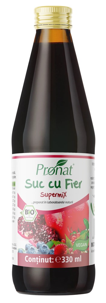 Ingrediente: rodie*, struguri roșii*, soc*, merișoare*, aronia*, merișor de munte*, coacăze negre*, afine*, acai*, fier din extract din frunze de curry*.