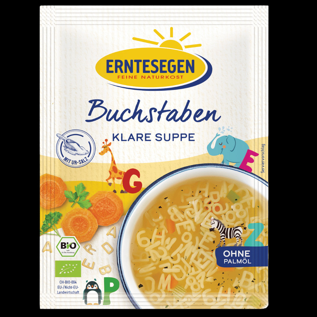 Ingrediente: 79% paste făinoase (din grâu dur), 7,8% sare de masă, amidon de cartofi*, 4,5% legume*(ceapă*, 1,4% morcovi*, țelină*, praz*, dovleac*), extract de drojdie*, concentrat de suc de morcov*, ulei de floarea-soarelui*, ierburi*(inclusiv frunze de țelină), condimente*, usturoi*.