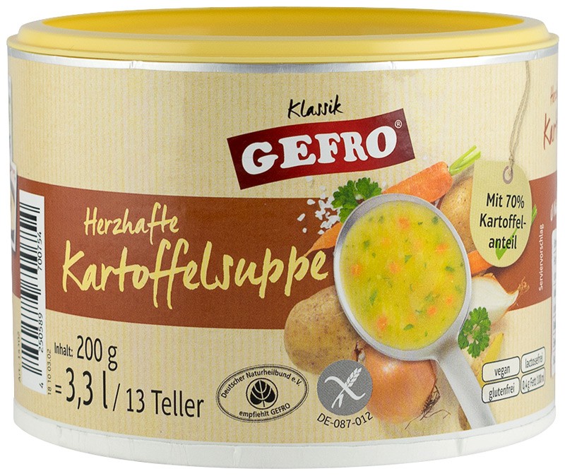 Ingrediente: cartofi (70%), sare de mare, ulei de palmier**, condimente (ceapă, morcovi, pătrunjel, semințe de țelină), potențiator de aromă: monosodiu glutamat*, bulion de legume granulate (condiment (conține soia), ulei de palmier, sare), dextroză, condimente, extracte de condimente.