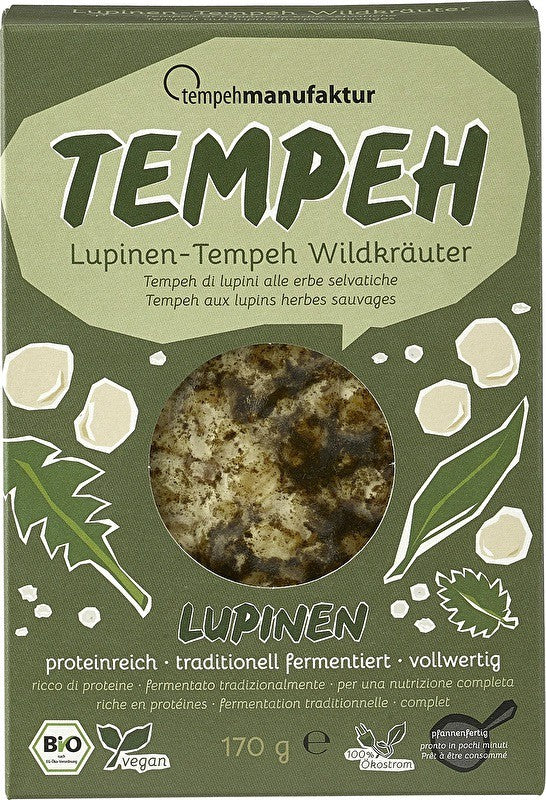 Ingrediente: lupin* (lupin* 50%, apă), apă, condimente* 0,9% (usturoi*, cimbrișor*, cimbru*, frunze de păpădie*, frunze de urzică*, cimbru de munte*), sare de mare, culturi starter (Rhizopus).