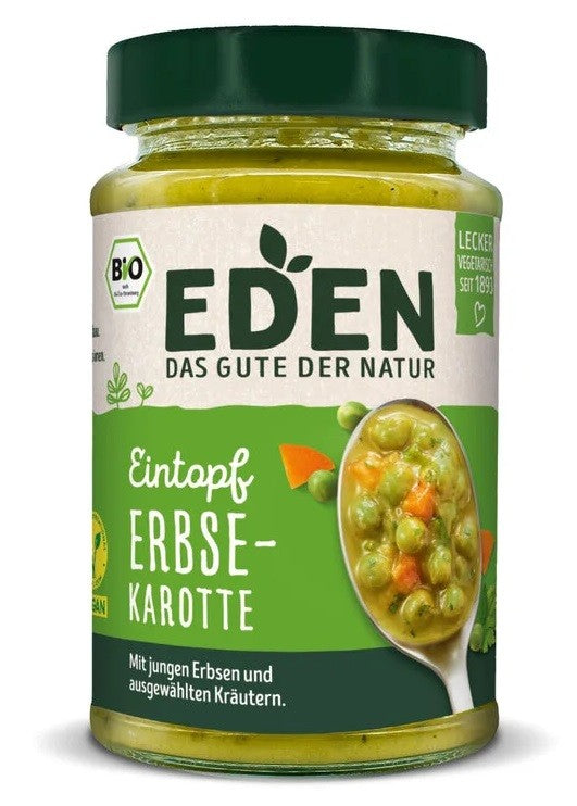 Ingrediente: 33% mazăre*, apă, 17% morcovi*, țelină*, ceapă*, praz*, amidon de porumb*, ulei de măsline extra virgin*, sare de mare, ierburi* (0,5% pătrunjel*, cimbru*, frunze de dafin*), sare afumată (sare, fum), condimente* (curcuma*, usturoi*, piper*, ghimbir*, chimion*).