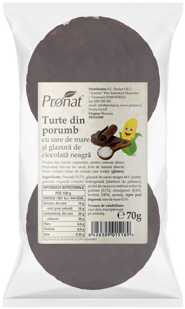 Ingrediente: Porumb 53,7%, glazură de cacao neagră 46% (zahăr, grăsime vegetală complet hidrogenată [sâmburi de palmier], pudră de cacao cu continut redus de grăsimi [11%], emulgatori [E492, lecitină, E476], aromă), lapte praf degresat, sare de mare 0,3%.